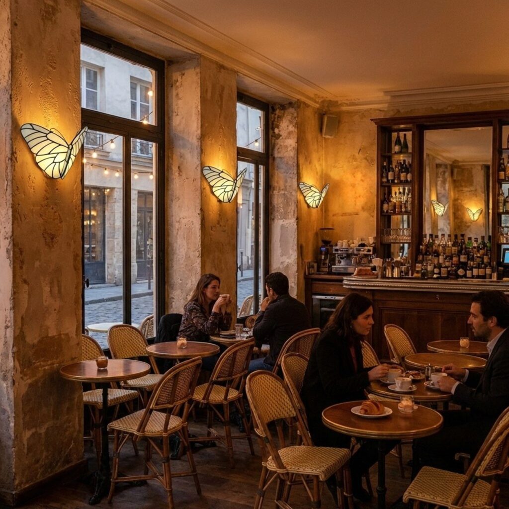 Tiffany wandlamp Satin Butterfly – vlinder glas-in-lood