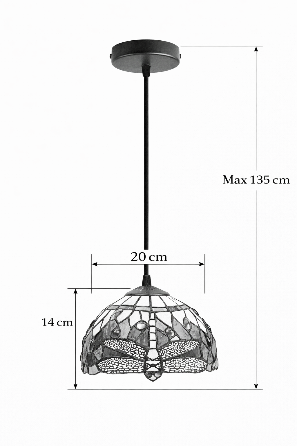 Deze uitvoering hangt niet aan een ketting maar aan een snoer van 135 cm, dat eenvoudig is in te korten. Ideaal voor wie een speelsere of modernere ophanging zoekt, met behoud van de charme van klassieke Tiffany verlichting.
