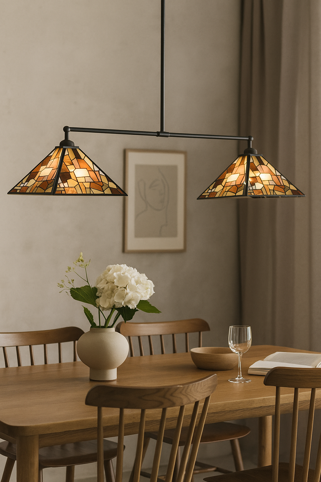 Tiffany T-lamp Fallingwater – 2-lichts hanglamp met karakter