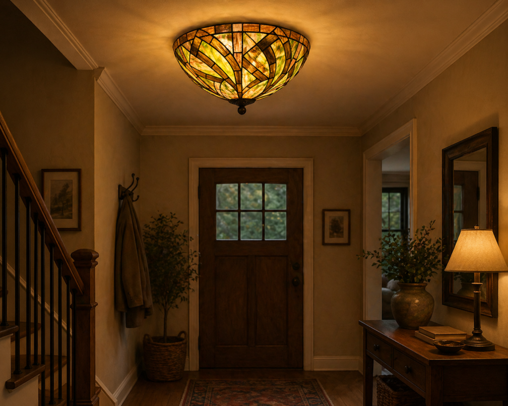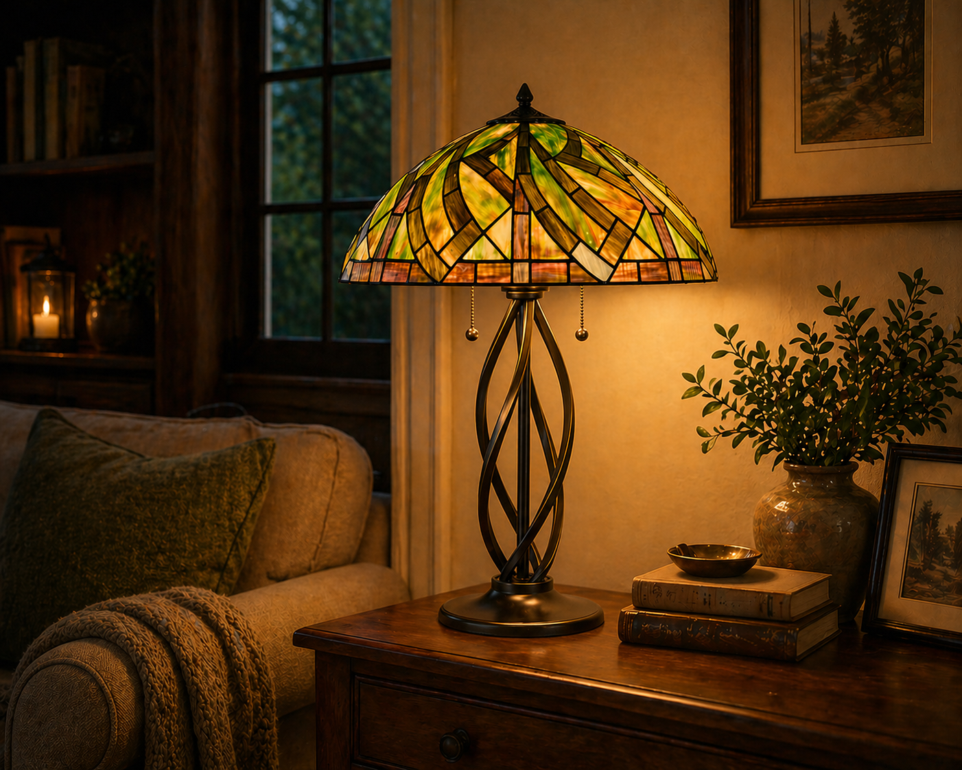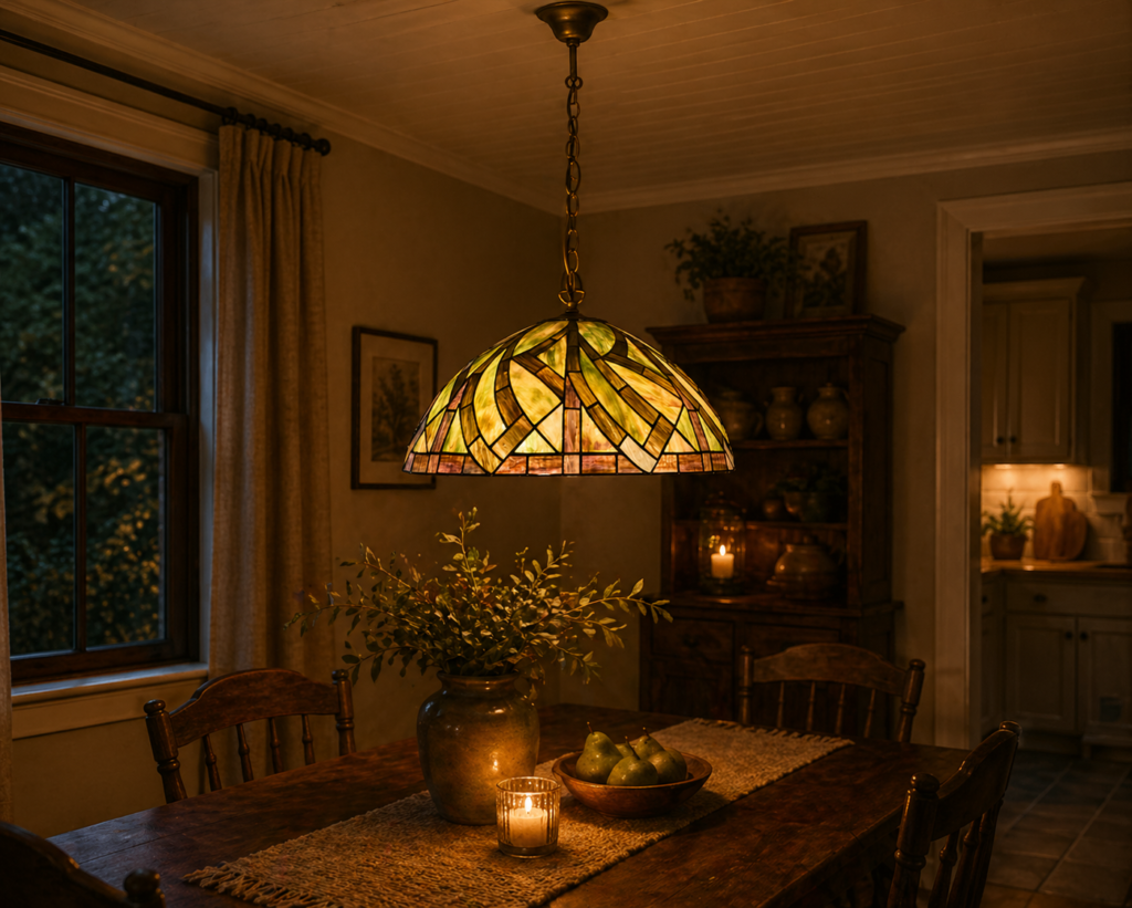 De natuur is het mooiste kunstwerk op aarde. Al lopend door de natuur zagen de wilgentakken er zo mooi uit! Samengevlochten tot een poortje om doorheen te lopen, gaf dit de inspiratie om de Tiffany Willow te ontwerpen! Zie hoe prachtig de glaskap is geworden: De groen en bruintinten uit de natuur geven een prettig en rustgevend gevoel. De wilgentakken als strakke lijnen gestileerd in bijzonder getint glas en uiteindelijk gecreëerd tot een speels patroon. Haal een stukje van buiten naar binnen!