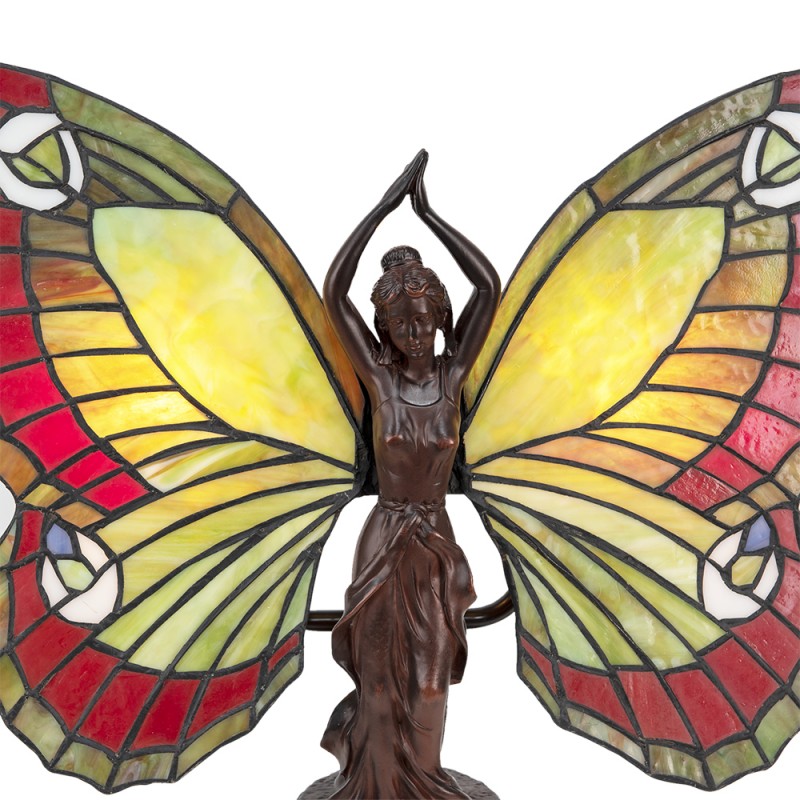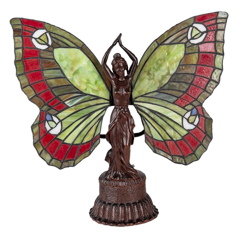mooie sierkelijke eyecather waarvan de voet is gemaakt van metaal en vleugels gemaakt van echt glas