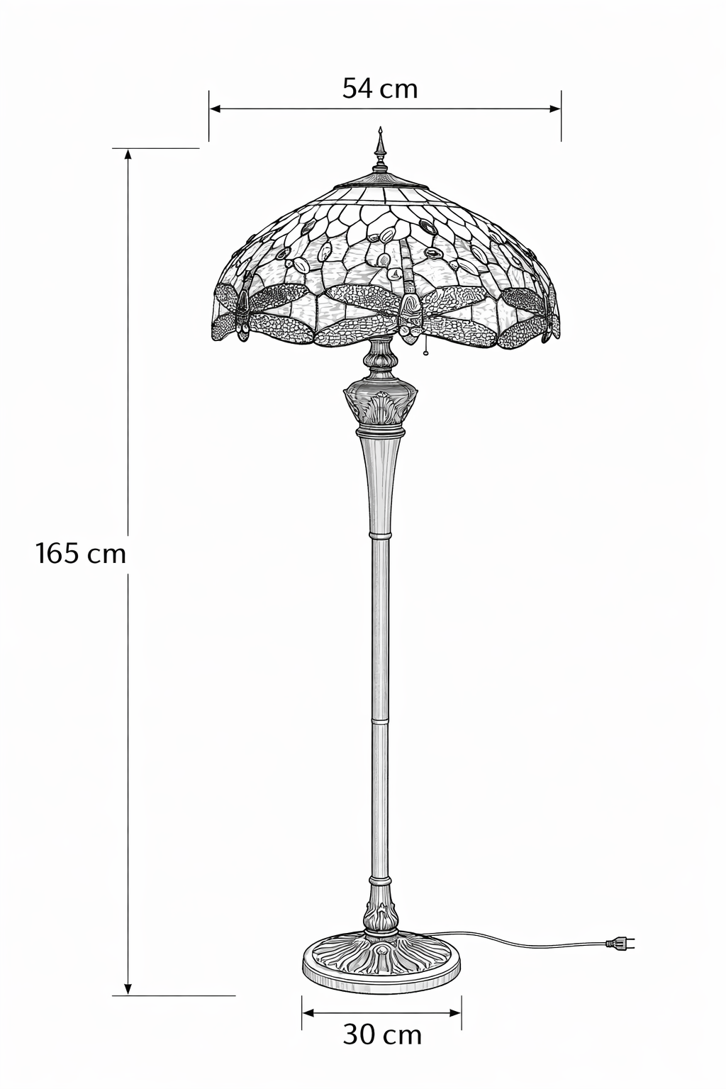 Deze Tiffany vloerlamp Deluxe 165 cm is een elegante en sfeervolle 3-lichts vloerlamp met een klassieke uitstraling. De combinatie van de sierlijke bruine voet en de grote Tiffany kap maakt deze lamp tot een echte blikvanger in elk interieur.