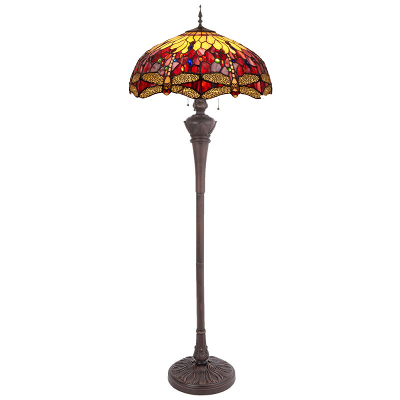 Tiffany vloerlamp Deluxe 165 cm – 3-lichts Dragonfly Belle Rouge – libelle rood