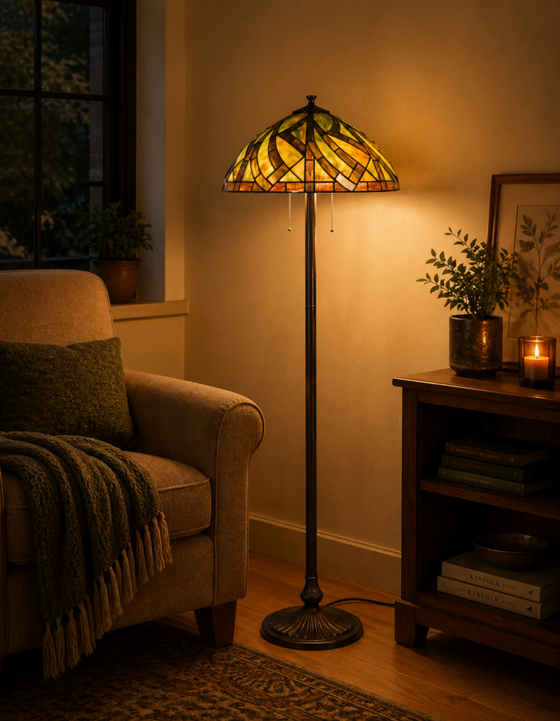 Samengevlochten patronen in bijzonder getint glas waarin de groen en bruintinten een rustgevend gevoel geven. De mooie ronde vorm van de lantaarn leent zich goed om te zetten op de vensterbank. In het raamkozijn is dan een stukje natuur zowel binnen als buiten te zien!